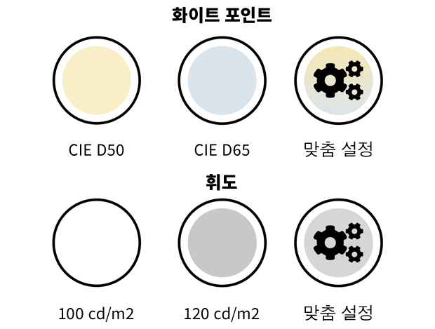 프리셋을 사용해 디스플레이 맞춤형 프로파일을 손쉽게 생성한 후, 화이트 포인트와 휘도를 사용자 정의하세요. 이상적인 설정을 빠르게 만들어 디스플레이에서 완벽하게 최적화된 색상의 세계를 열어보세요.